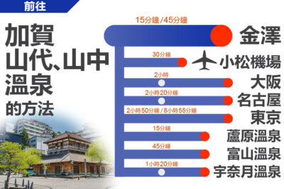 請使用這份交通指南,找出前往加賀山代、山中溫泉的最佳交通方式!要從小松機場前往加賀山代、山中地區時,可以搭乘機場巴士...