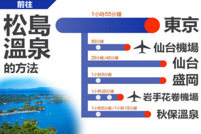 請使用這份交通指南,找出前往松島溫泉的最佳交通方式!要從仙台機場前往松島地區時,可以搭乘鐵路與JR在來線,要從東京、仙台...