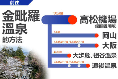 請使用這份交通指南,找出前往金毗羅溫泉的最佳交通方式!要從高松機場前往金毗羅地區時,可以搭乘直達巴士,要從岡山或大步危...