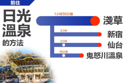 請使用這份交通指南,找出前往日光溫泉的最佳交通方式!要從淺草或新宿(東京)前往日光地區時,可以搭乘直達特急列車...