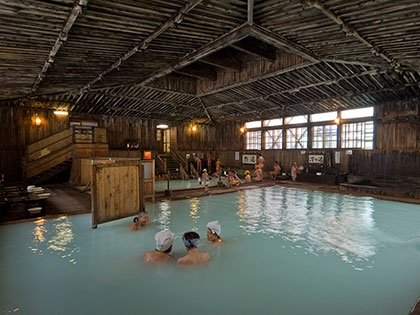 各類溫泉充實。備有「山水之湯」「豐澤之湯」以及混浴式露天浴池「大澤之湯」。擁有200年歷史的傳統日式建築與溪流沿岸的露天浴池,與四周自然完美調和之美麗旅館。