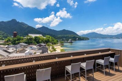 交通:從新大阪站搭乘JR新幹線1小時25分鐘到達廣島站後,轉乘JR山陽本線25分鐘到達宮島口站,再轉乘渡輪10分鐘,在宮島棧橋下船,搭乘接送巴士3分鐘(或步行10分鐘)即達。